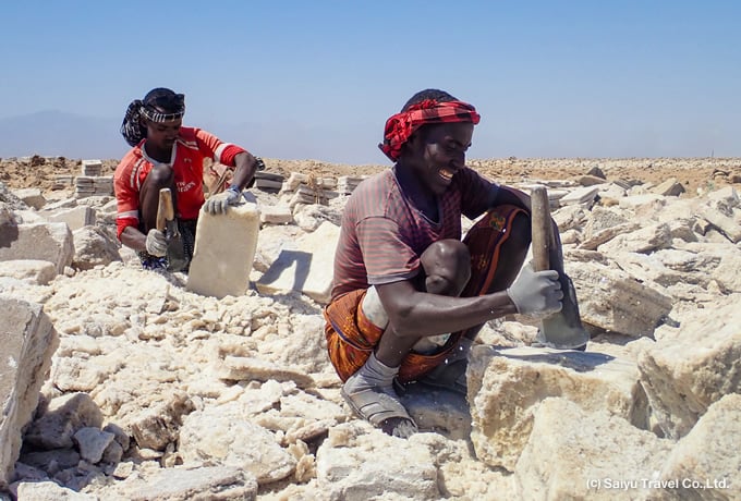 | 5 | アハメッド・エラ | 終日、アハメッド・エラに滞在。大地溝帯が造り出したダナキル砂漠・ダロール地区の大自然を堪能します。訪れるたびに姿を変えるダロール火山、塩の奇岩群、硫黄が噴出する硫黄泉など、不思議な景観をご覧ください。
