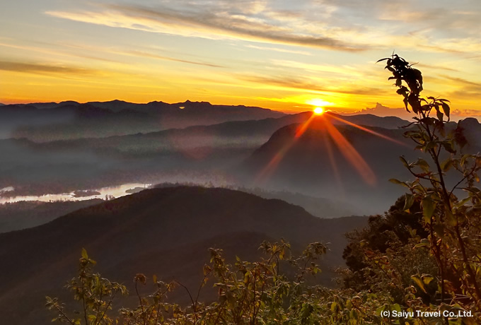 ポイント 聖山アダムス・ピークを登頂 頂上でご来光を望む