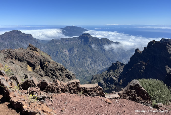 | 5 | ラ・パルマ島 | 終日、ラ・パルマ島西部及び北部を観光。クンブレ・ビエハ火山の火山丘や海岸線の風景を楽しみながらカルデラ・デ・タブリエンテ国立公園へ。世界各国の天文観測所が集まるロケ・デ・ロス・ムチャチョス(2,426m)へご案内します。ゆっくりとカルデラの絶景やカナリア諸島の固有植物エキウムの観察をお楽しみください。 ラ・パルマ島泊