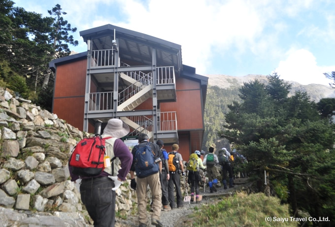 専用バスと混乗車にて塔々加(タータカ)鞍部(2,610m)へ。 ●排雲山荘までの登り(約6時間) ゆるやかな登りを排雲山荘(3,402m)へ。樹林帯のよく整備されたルートです。 排雲山荘泊