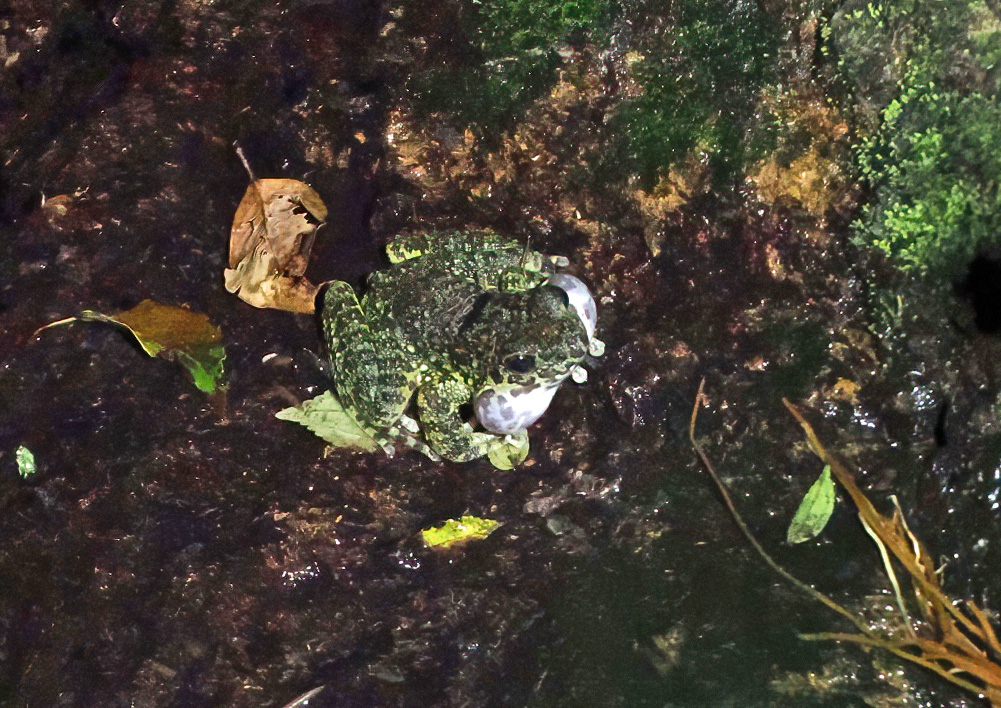 食後は南へ下り、ワシミミズクを目指します。3時間ほどで到着。ここは車を降りて50mも歩けば姿を確認できる絶好のポイントです。まずは離れた距離で家陰から双眼鏡で探すといました!成鳥が岩に止まっています。しかしいつもと様子が違い、かなり警戒している感じです。少し歩を進めると飛んでしまいました。観察場所まで行くと草地の前にロープが張られていました(史跡のため立ち入り禁止と書いているようです)。我々はいつも草地の手前から見ているので問題は無いのですが、いつの間にかこんなことに。岩壁を探すと寄り添うようにして2羽の雛が確認できました。まだ綿毛が多い個体です。先ほどの親鳥が消えた崖裏を探しにいくと茂みの中にいるのを発見。皆さんとプロミナーで観察し、距離はありますが撮影もできたようです。結局、この個体は警戒心が強く、我々が少し動くだけで飛んでしまいました。今までこんな事は無かったのにと元の場所へ戻ると一人のカメラマンがロープの中へ入り、崖に近づいています。こういう事だったのか。朴さんがその方と話したところ「君たちは何故入らないの?大丈夫だよ」と言われたそうです。これではダメです。ディスターブが掛かるのは明らかです。心無いカメラマン達が彼らの生活を脅かしているようでした。これからはこの場所での観察も難しくなるでしょう。無事ワシミミズクを見ることは出来ましたがモヤモヤとした気分で現地を後にしました。