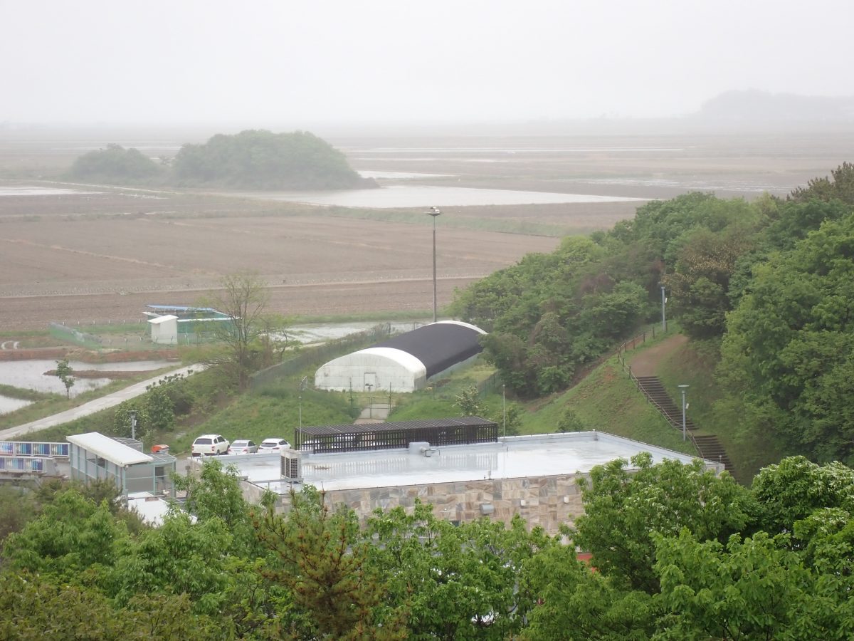 関空組は私一人なので参加者の皆さんとは仁川で顔合わせです。仁川に到着するとあいにく雨。午後からの回復予報を期待しつつ、中部からご参加の方々と合流し談笑していると、成田便が遅延との一報が。現地添乗の朴さんといつものドライバーさんとも合流し、ファストフード店でしばし待機。13時過ぎに成田組の方たちが到着する頃にはすっかり雨も上がっていました。これは幸先が良いぞ。皆さん機内食が出ていたので昼食はパスし、ホテルに向かい、荷物を置いて早々に探鳥に出かけました。