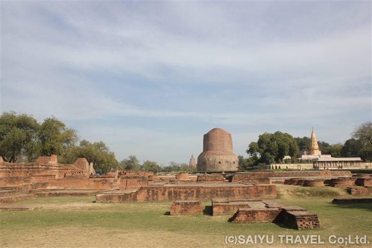 アショカ王(前3世紀中頃)の頃から12世紀までの遺址と多数の彫刻が出土し、グプタ時代に最も栄えたことが明らかになった場所。また東方に現存するダメーク・ストゥーパは、高さ約42m、基部の直径約28mあり、グプタ時代の貴重な例です。現在、公園のようにきれいに整備され、中心には仏舎利を収めたダメーク・ストゥーパが堂々とそびえます。