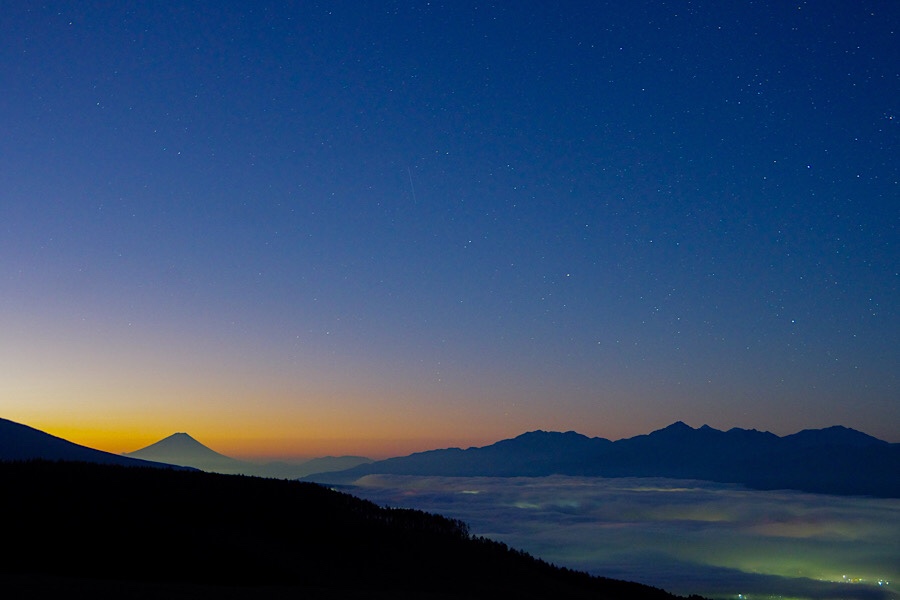 霧ヶ峰では星空からの朝やけ。美しい朝