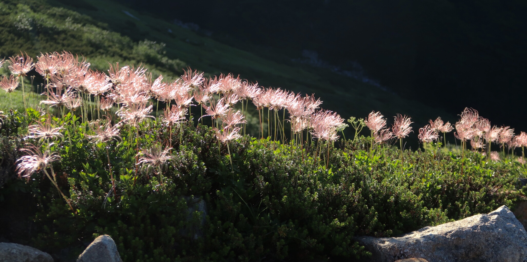 人気の薬師岳にはたくさんの登山者が登っています。初めは遠くに見えた山にどんどん近づきたどり着きました。縦走登山の醍醐味です。自分の足を褒めてあげたい!今年は花も早く、チングルマの綿毛が美しい縦走路でした。