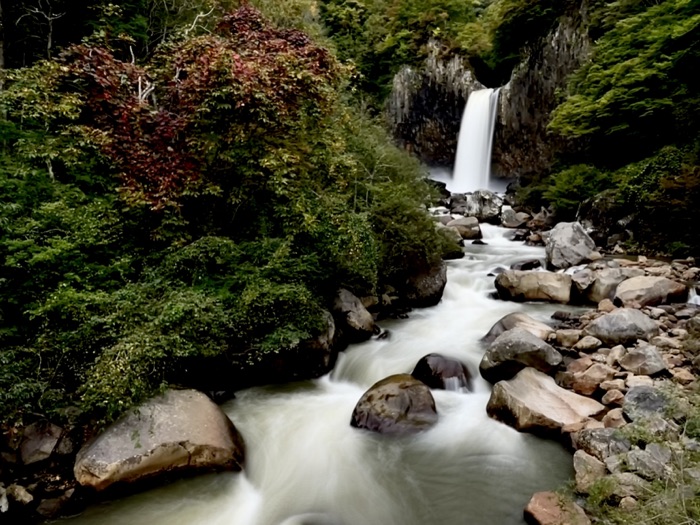 舞台は妙高山山麓に変わります。笹ヶ峰の森林セラピーの自然豊かな森や牧場歩き、迫力ある苗名滝なども見学しました。