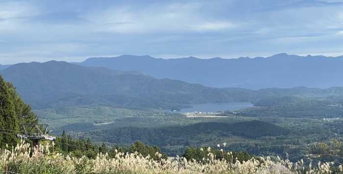 旅も後半に入り、野尻湖。そして斑尾山が見え始めました。手前左側の山が斑尾山。あまとみトレイルのゴールであり、信越トレイルのスタート地点でもあります。