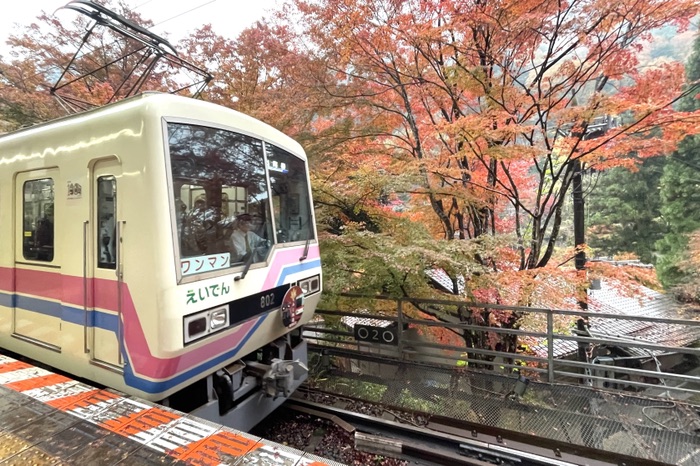 京都トレイルの楽しみの一つはたくさんの様々な交通機関を利用して登山をすること。交通機関が豊富に発達している京都ならではの楽しみ方。叡山電鉄に乗って鞍馬へ。そして鞍馬から貴船へ義経ゆかり地をめぐりながら木の根道。この道は一周トレイルには含まれていませんが、京都ハイキングコースの名コースです。歩けるというだけで、旅の幅がぐっと広がります。