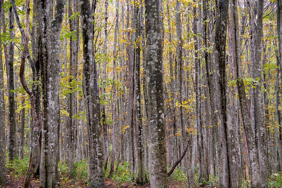 延々と続く、ブナの二次林を歩いたり、撮ったり。