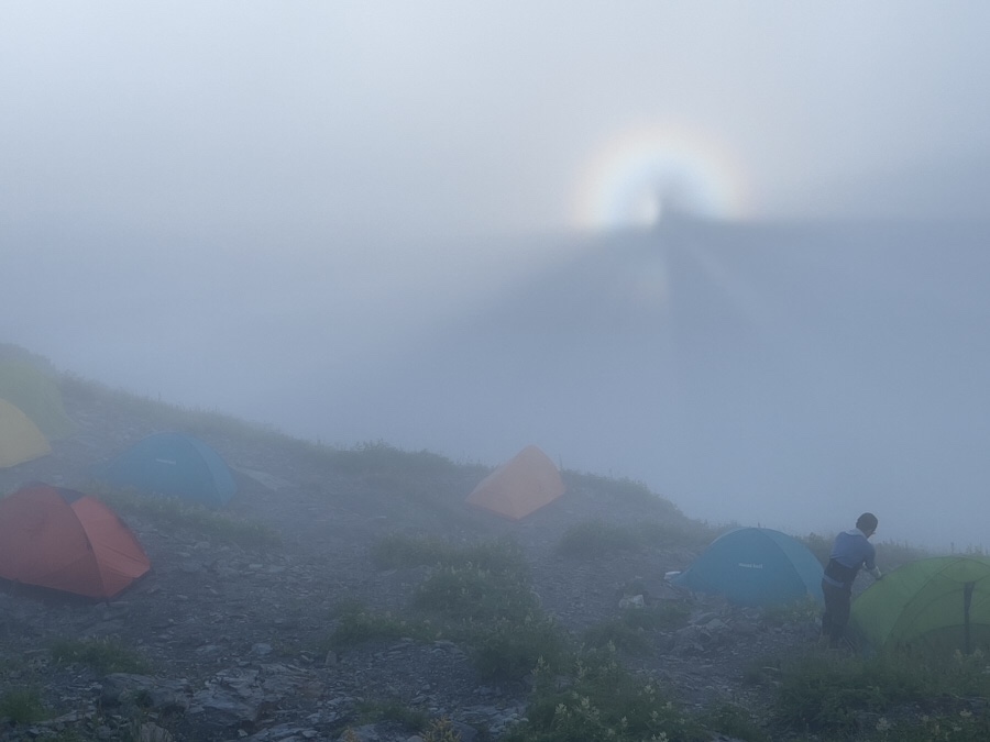 肩の小屋ではブロッケン現象が一時間以上もずーと見ることができました。