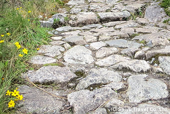 インカ道は情報伝達網としてインカ帝国の統治システムに於いて重要な役割を持っていました。その情報を運んでいたのが、『チャスキ』と呼ばれる飛脚です。インカ道を走り、3kmごとのリレー形式で、皇帝の伝令を各地に伝えていました。ルンクラカイ遺跡は、その交通を監視、管理する役目も果たしたといいます。このような旅籠は各地にありましたが、どこも食料を蓄えていたため、食料を持ち歩かず旅が続けられたといわれています。 ここからしばらく登ると二つ目の難所ルンクラカイ峠(3,975m)です。天気が良ければここからアンデスの山々が望めます。