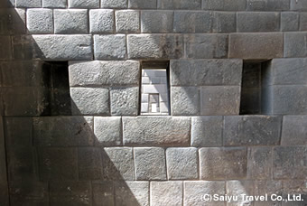 台形の窓がぴったりと並ぶコリカンチャの精緻な石組み