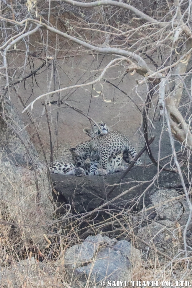 地元ガイドが、「2頭の子供がいるお母さんレオパードだよ、もうすぐすると子供が現れる可能性があるか待っていてごらん」と。観察していると、あくびもしていましたが子供を呼んでいるようにも見えました。