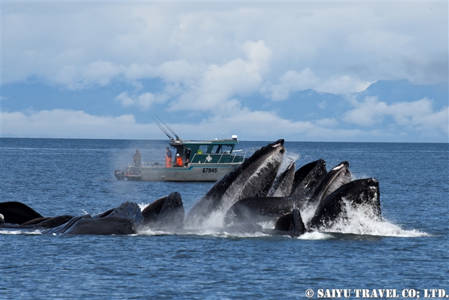 シトカに現れるザトウクジラの動向記録を見ていると、ニシンの産卵前にシトカ・サウンドの太平洋に開いた沿岸部に現れ、産卵が始まるとばらばらになって南東アラスカの各地へと散らばったようでした。ソールズベリー・サウンドやチャタム海峡でも複数頭を観察できました。