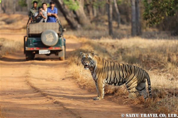 サファリカーを見下ろしています。堂々として、さすがランタンボール、レイクエリアのトラです。