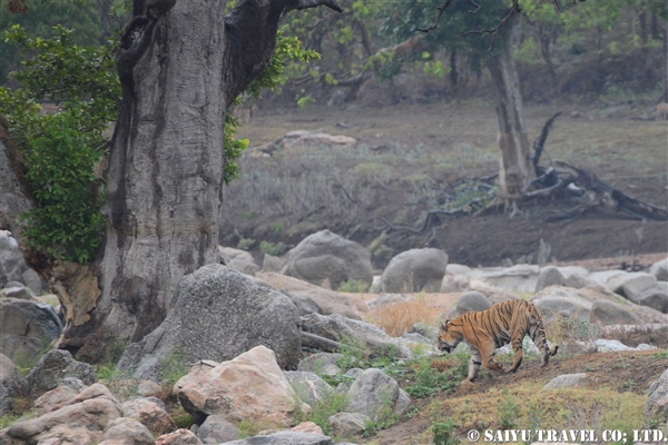 モンスーンの季節ですから、雨の中でのサファリも。雨が降ると正直なところ動物のサイティングは非常に下がります。特に、トラは。