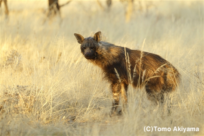 カッショクハイエナ Brown Hyena ハイエナ科は世界に4種います。ブチハイエナ シマハイエナ カッショクハイエナ アードウルフです。このカッショクハイエナ いままでに数回は出会いがありましたがなかなか写真を撮らせてもらえていませんでした。遠いか暗い時間たいしかあえてなかったのです。2025年のツアーで行ったナミビアのオコンジマでは何度もカッショクハイエナに会うことができました。そして今までの出会いと合わせてハイエナ4種を撮影することができました。