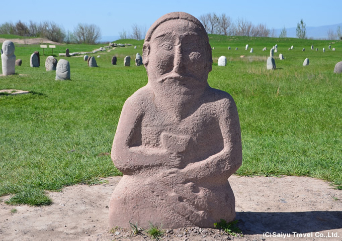 カラ・ハン朝の都・バラサグンではブラナの塔と、突厥の戦士の墓と言われる石人像を見学。