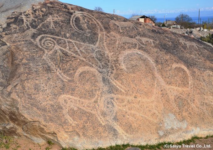 ボートクルーズや近郊に残る古代サカ族の刻画が残る野外岩絵博物館も見学します。
