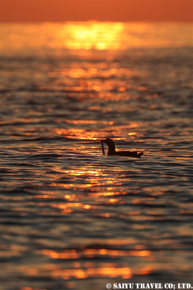 On the day we arrived on Terui Island, Mr. Takaki Terasawa, a nature photographer living on the Island, told us “Today’s sunset has a lot of potential” so we headed back out to sea in his boat, ‘Keimafuri Gou’ (literally translated to the ‘Spectacled guillemot ship’).
