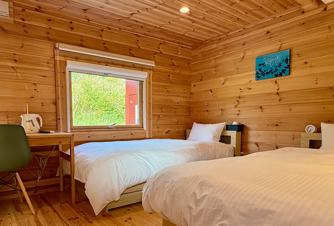 During your stay on Teuri Island, you will be accommodated at Teuri Mafure, a Western-style lodge operated by Saiyu Travel. Opened in spring 2025, it is the only western style accommodation on the island. Each room is equipped with comfortable beds and air conditioning. The on-site restaurant serves Western-style cuisine featuring local ingredients from Teuri Island and Hokkaido.
