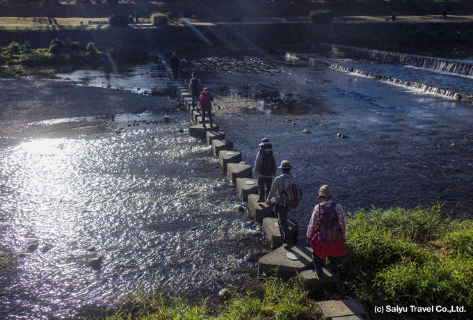 Transfer by private vehicle to the starting point of today's hike. Walk along the tranquil gorge trail that follows the crystal-clear River, making your way toward Arashiyama. This serene path, adorned with moss-covered rocks and flowing water, offers moments of quiet beauty. Highlights along the way include panoramic views over Hozu Gorge, the historic preservation district of Saga-Toriimoto with its traditional thatched-roof houses, and Adashino Nenbutsu-ji Temple, where hundreds of stone statues commemorate lost souls—a route where stillness and history intersect. Upon arrival in Arashiyama, visit the famed Bamboo Grove and Tenryu-ji Temple. Cross the iconic Togetsukyo Bridge to begin the ascent of Mt. Matsuo, pausing at Iwatayama Monkey Park, home to wild Japanese macaques. The hike concludes at train station, from which you’ll return to your hotel by train.