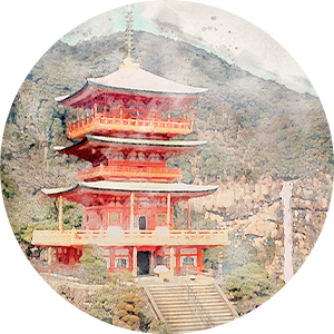 熊野本宮大社、熊野速玉大社とともに、全国約4,700社ある熊野神社の総本社。那智大滝に対する原始の自然崇拝を起源とし、古来「熊野夫須美大神(イザナミノミコト)」の御神徳により「結宮(ムスビノミヤ)」と称され、人の縁など諸々の願いを結ぶ宮として崇められました。仏教における「観音信仰」の聖地でもあり、インドの僧・裸形上人が那智の滝で修行を積んだことでも知られています。別宮として那智の滝を祀る「飛瀧神社」もあります。