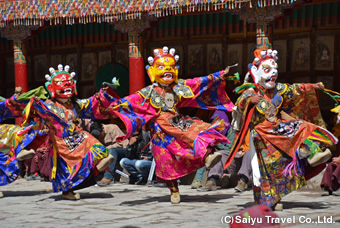 ヘミス僧院のツェチュ祭ラダック最大の祭り。開祖グル・リンポチェの再来を盛大に祝います。掛仏・タンカの開帳や数十の僧侶が仮面を被り舞う姿を見学できます。 |