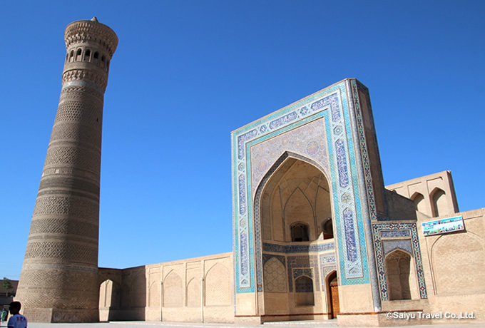 当時の面影をそのまま残すブハラの旧市街には、古くからの建築物が数多く残っています。13世紀のチンギス・ハーン襲来の際に破壊を免れたサーマーン朝の王イスマイル・サマニの廟は、現存する中央アジア最古の建物です。また、隊商が交易品を売買した「タキ」と呼ばれる商業施設には、現在も店が軒を連ね様々な物が売られています。そして、砂漠を行く隊商の灯台の役割をした巨大なカリヤン・ミナレットが、今もブハラの街を見下ろすようにそびえ立っています。