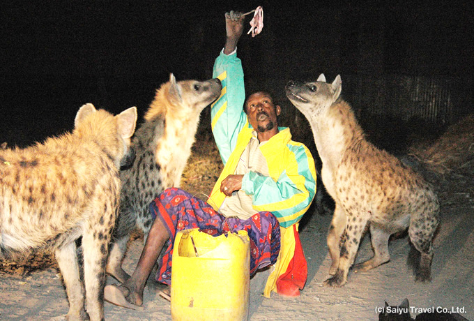 午前のフライトでアディスアベバへ。国内線を乗り換え、エチオピア東部のディレダワへ。着後、専用バスにてハラールへ。夜、ハイエナマンショーをご覧いただきます。