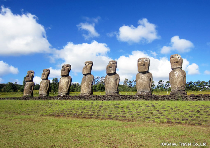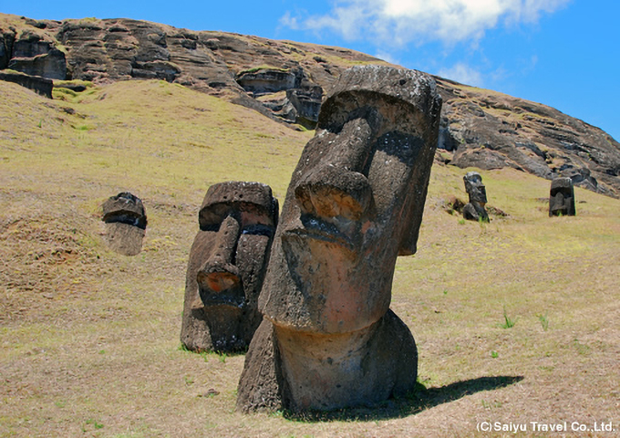 | 4 | イースター島 | 引き続き、終日イースター島観光をお楽しみください。モアイ倒し戦争の名残でうつ伏せに倒されたままのモアイが残るアフ・ハンガ・テエ、モアイを作るために石が切り出されたラノ・ララク、15体のモアイが並ぶアフ・トンガリキ、伝説の王・ホツマツアが持ち込んだとされる石のテ・ピト・クラ、ホツマツア王が上陸した場所とされるアナケナビーチへご案内します。夕食後、ご希望の方には夕陽鑑賞にお連れします。