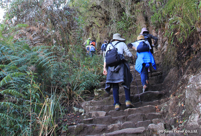 マチュピチュ遺跡見学日は、背後に聳えるワイナピチュ峰登山にもご案内します。頂上では別の角度からのマチュピチュ遺跡やその周辺の深い山々の景色をご堪能ください。