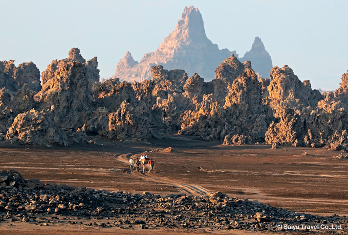 知られざる国・ジブチからエチオピア北東部ダナキル砂漠を走破。アフリカ大地溝帯で最も標高の低い海抜マイナス155mのアッサル湖からダナキル砂漠を走り、エルタ・アレ火山、アハメッド・エラのラクダのキャラバン、ダロール地区の奇観、そして海抜2,000m超えのアビシニア高原までの旅を12日間で実現しました。ポイント 幻想的なアベ湖畔の夕日を見学