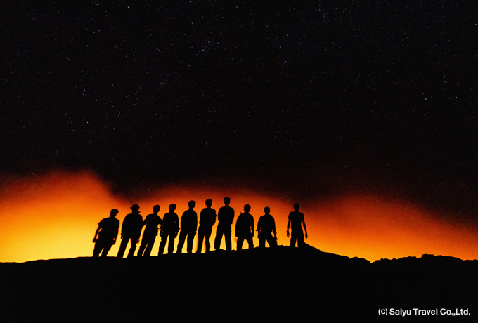 | エルタ・アレ火山の見学について | 火口へは片道45分~1時間ほど足場の悪いガレ場を歩きます。火山活動の状況によっては必ず溶岩湖が見られる訳ではありません。 |