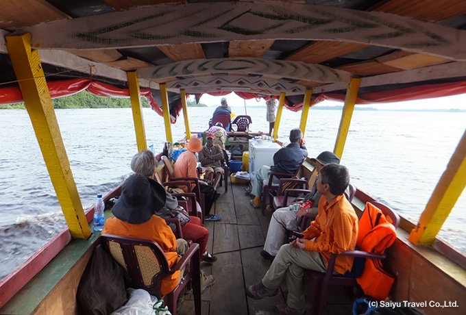 木造船での舟旅について | エンジン付きの木造ボートで6泊7日の舟の旅がメインとなります。舟にはキッチン、トイレが備えられ、テーブル、椅子、冷蔵庫、発電機を積んでいます。船内での食事は同行するコックが料理いたします。日程や移動は現地の状況を見てフレキシブルに対応させていただく冒険行です。観光客がまだほとんど訪れない地域のため現地の設備やサービスが不十分です。舟旅の最中は通信事情も悪く、病院などの施設もありません。添乗員は緊急時に備えて衛星電話を持参いたしますが、辺境への特殊旅行であることをあらかじめご理解いただける方、ほかの参加者と協力・協調できる方のご参加をお待ちしています。 |