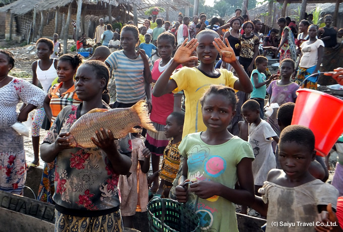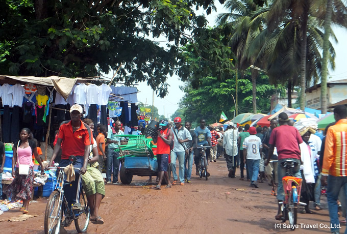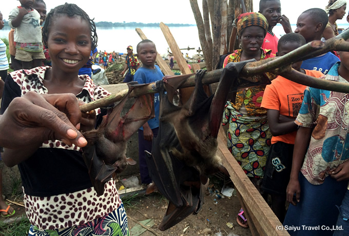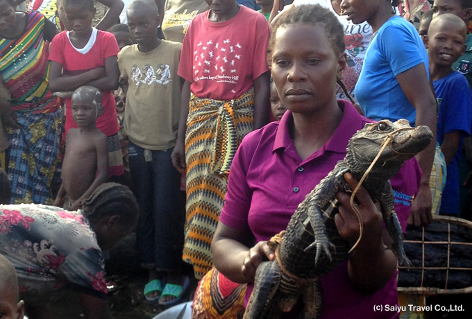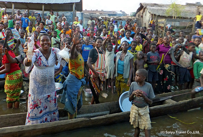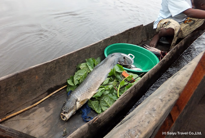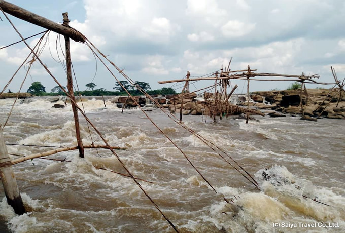 午前の国内線でキサンガニへ。到着後、コンゴ川の浅瀬の急流を利用した独特の漁法で知られるワゲニアやマーケットを散策。船旅に備えて買い出しもします。