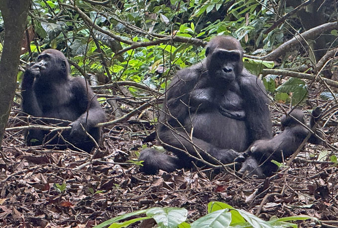 午前、再びフェルナン・ヴァズ方面へプライベートボートサファリにてゴリラ観察(約2時間)。