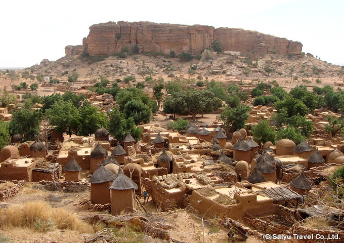 独自の宗教観を持つドゴン族の集落を巡り、バンディアガラの断崖に建つ独特の住居を見学。彼らの神話を綴った仮面を被って踊る、マスクダンス(仮面舞踊)もご覧いただきます。