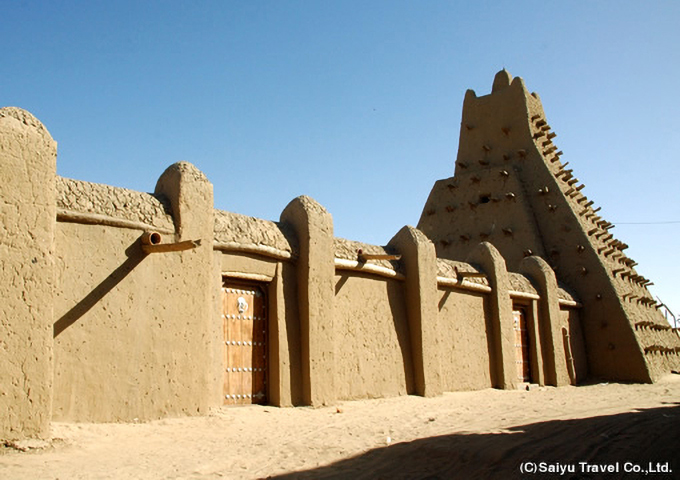 | 8 | トンブクトゥ | 終日、かつての「黄金の都」トンブクトゥ観光(泥造りのモスク、探検家ルネ・カイエの家、グラン・マルシェ(市場)、旧市街等)。夕方、ラクダに乗って砂漠の民・トゥアレグ族のキャンプを訪問。サハラに沈む夕日もご覧いただけます。 |