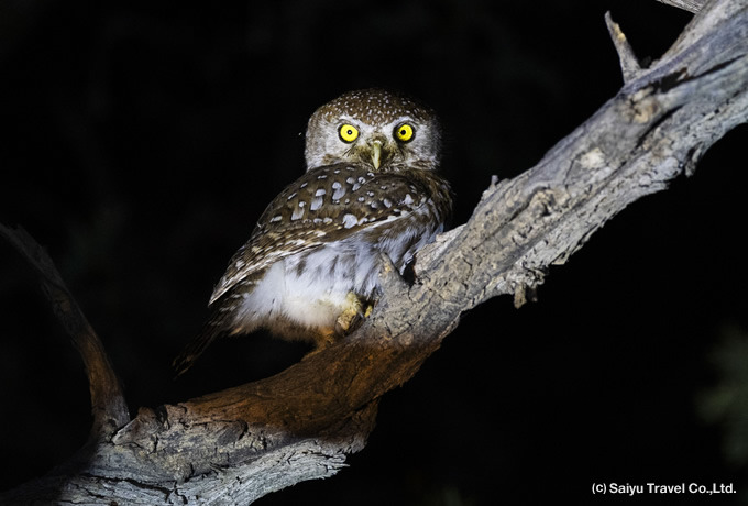 日中のサファリでは観察できない夜行性の生き物もナミビアの大きな魅力。エトーシャ国立公園やホバテレ保護区では夜のサファリでツチブタやアードウルフ、オオミミギツネ、ヨーロッパジェネット、リビアヤマネコなどの観察にトライします。