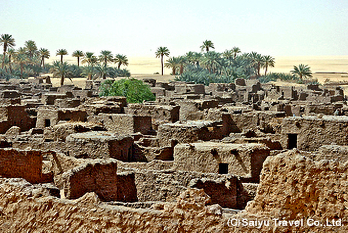 塩アグラム山脈の麓「3万本の椰子が茂るオアシス」と呼ばれるファシには見事な旧市街と塩田が残っています。ここは塩のキャラバンルート上にあり、治安を守るために町が城壁で固められました。塩田では今もラクダなど家畜用の塩が作られ、11月~1月末はキャラバンが滞在することがあります。