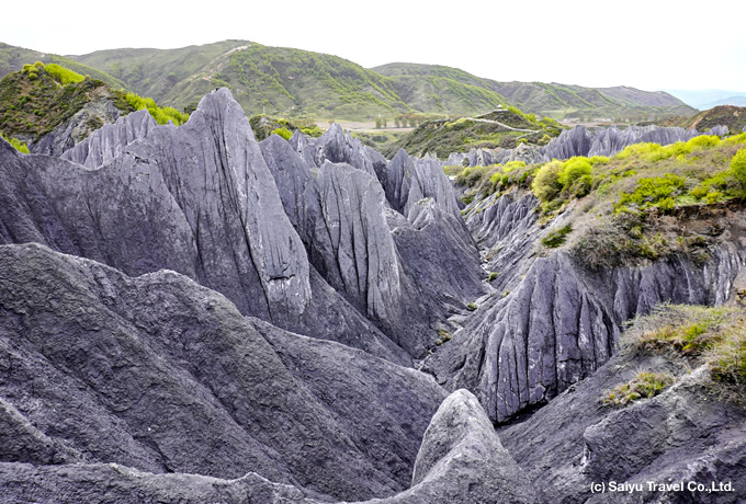 専用バスにて新都橋へ。天気が良ければ雅拉雪山(5,884m)や折多(チタ)峠(4,298m)にてミニヤコンカ山群等が展望できます。途中、チベット高原の塔公草原を越えて墨石公園(3,500m)を散策します。 新都橋(3,460m)泊