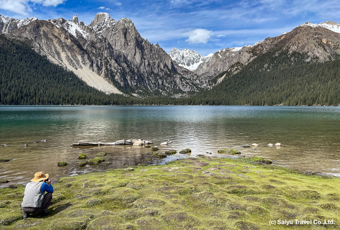 稲城亜丁自然保護区を更に西へと進み、チベット自治区との境に位置する巴塘(ばたん)。措普溝はその巴塘と理塘の間にある大きな渓谷です。四川省の西部を川西と呼びますが、その標高4,000mを越える川西高原に聳える、雪を頂く岩峰群の麓に青く澄んだ措普湖がひっそりと横たわります。高原には珍しく湖の回りは杉と柏の森に囲まれ、その神聖な雰囲気から「カムで最初の聖なる湖」と称されています。巴塘県では自然林と動植物の保全を強化しており、森林率と草原の植生被覆率を向上させ、生態環境の改善に尽力しています。国内外の団体ツアーがほとんど訪れないため、静かに散策をお楽しみいただけます。