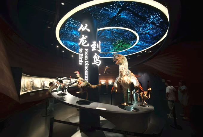 遼寧省で発掘される熱河生物群の恐竜化石は、恐竜から鳥類への進化を辿る上で非常に貴重なものばかりで、保存状態の極めて良く、通常の化石では残らない羽毛、皮膚、内臓などが鮮明に残る化石を間近に見ることができます。