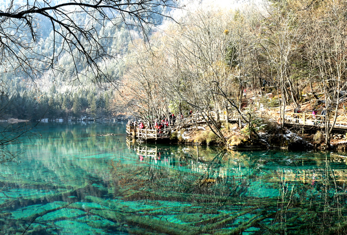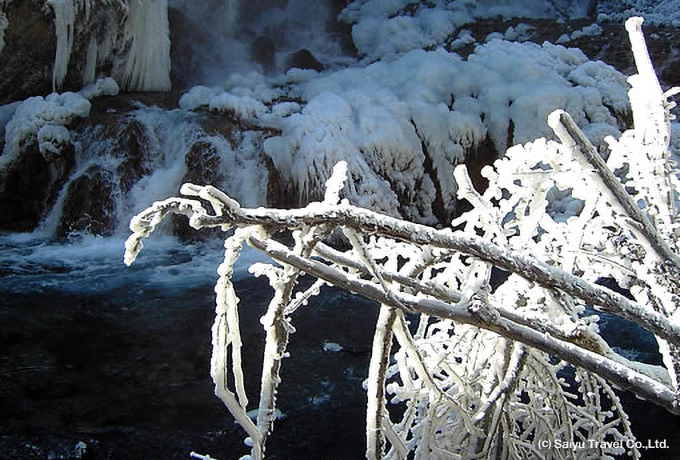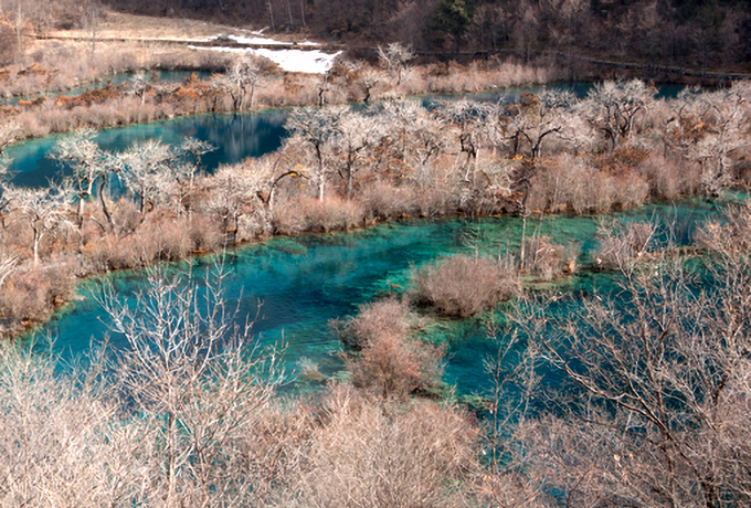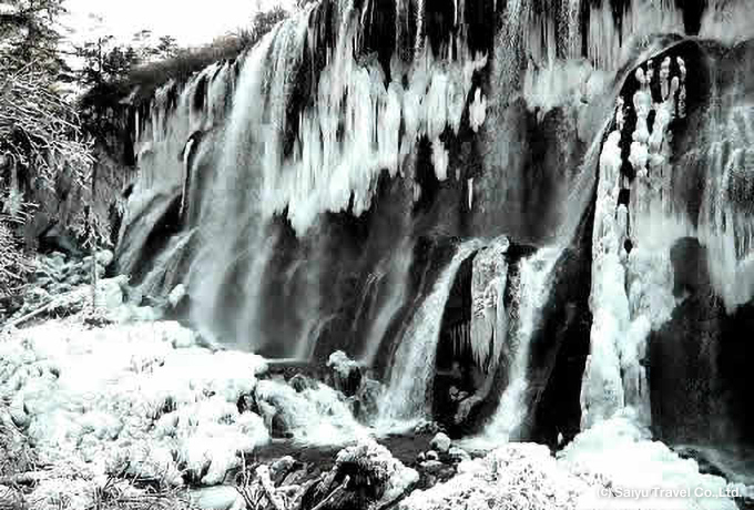| 5 | 九寨溝 | 終日、九寨溝観光。白銀の大自然を混乗バスと徒歩にて見学します。樹正溝(樹正寨瀑布、龍が伏せているように見える臥龍海、盆景灘等)、則査溝(五彩池、最幅の諾日朗瀑布等)、日則溝(熊猫海、色彩が美しい五花海、真珠の浜辺を意味する珍珠灘、山々を映し出す鏡海等)。 九寨溝:新九寨賓館泊 |