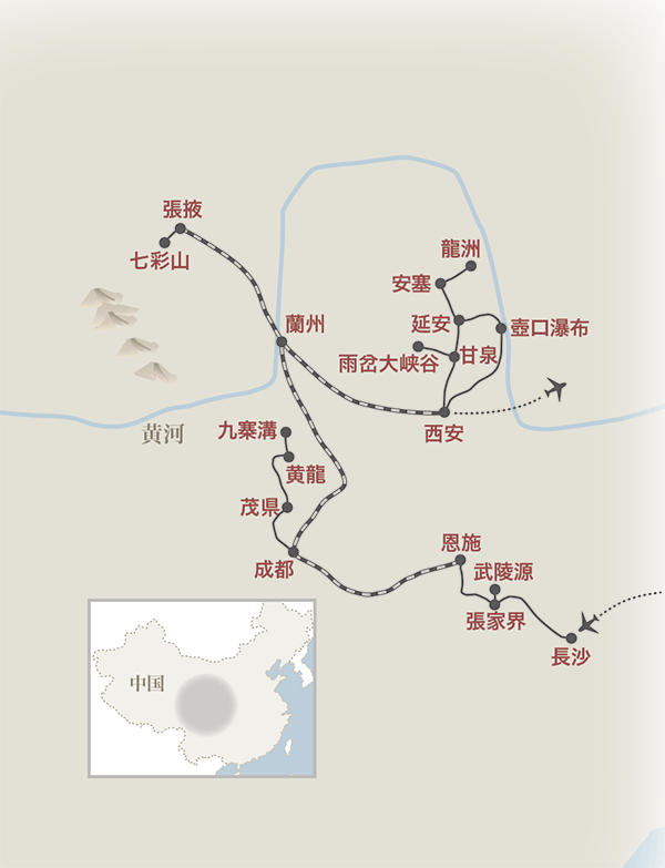 2008年に公開され一躍注目を浴びた張掖丹霞地貌「七彩山」、訪れる人は年々増えています。公園内の散策はもちろんのこと、上空から、これまでに見たことのない、連綿と続く虹の大地の絶景をご堪能ください。