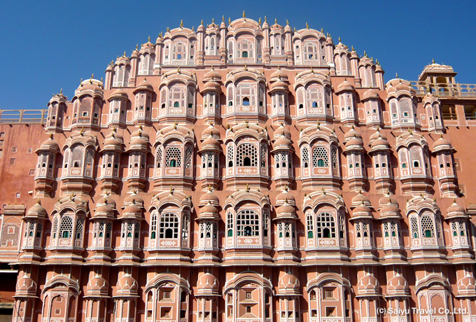 専用バスにてラジャスタン州の州都「ピンクシティ」ジャイプールへ。着後、市内観光(マハラジャが今も暮らすシティ・パレス、天文台ジャンタル・マンタル、風の宮殿(外観)等)。昼食はインド版定食ターリーをご賞味ください。