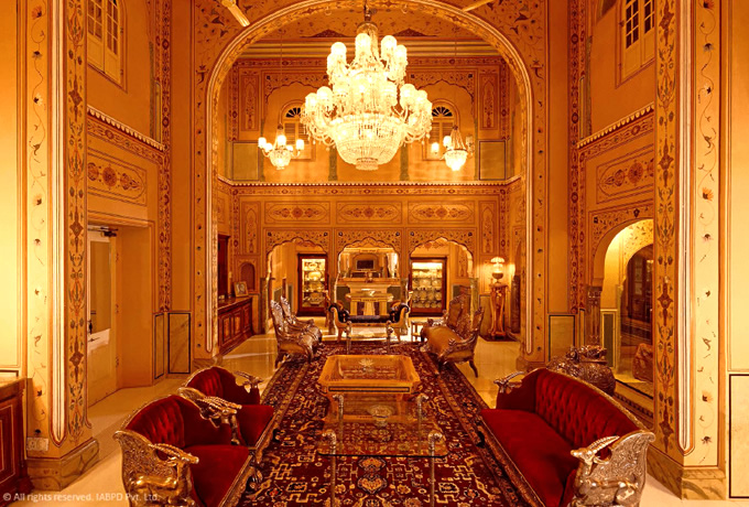 1727年に当地の君主のハヴェリ(邸宅)として建てられ、1996年に宮殿ホテルに姿を変えました。 ホテルの敷地内には、ダルバールホールや「黄金の宮殿」と呼ばれる部屋もあり、これらの部屋や客室はまさにマハラジャたちの歴史博物館とも言える豪華絢爛な姿を呈しています。当コースではラージパレスに2連泊、また2日目は午後にホテルでゆったりをお過ごしいただける時間を設けています。