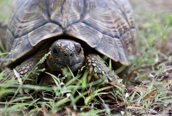 背中の甲板に放射状の星形模様がある美しいリクガメで、南アジアに生息しますがスリランカの個体は体が大きく黄色みが強いため、より美しいと言われています。ペット用の乱獲でワシントン条約Ⅰ種に記載されています。