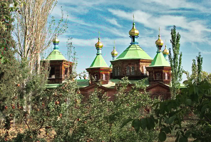 専用車にて、バルスクーン渓谷を訪れ、白いキンポウゲの花・トロリウス・リラキヌスや色とりどりの高山植物の観察や散策を楽しみます。その後、カラコルへ。着後、カラコルの市内観光(ロシア正教会の三位一体教会、ドゥンガン・モスク、バザール等)へご案内します。